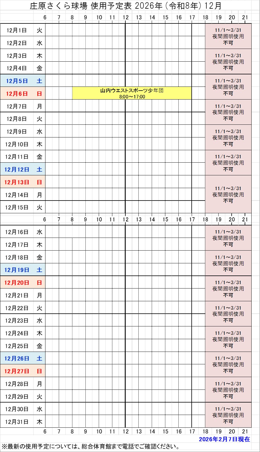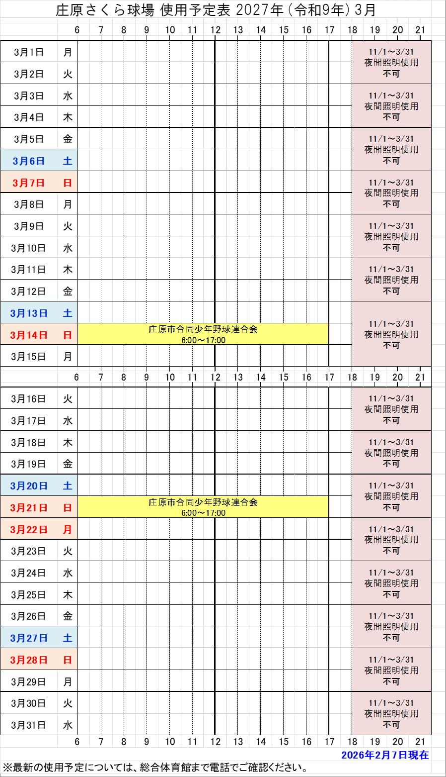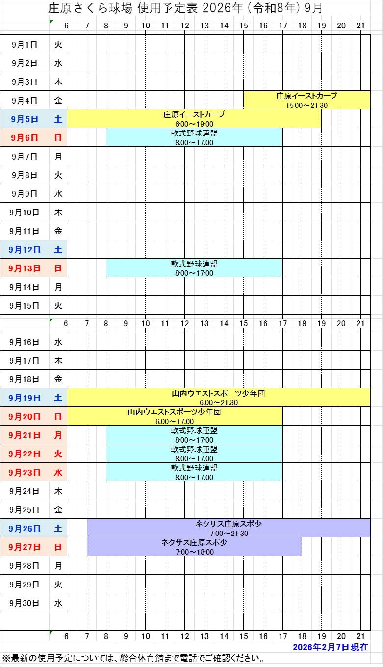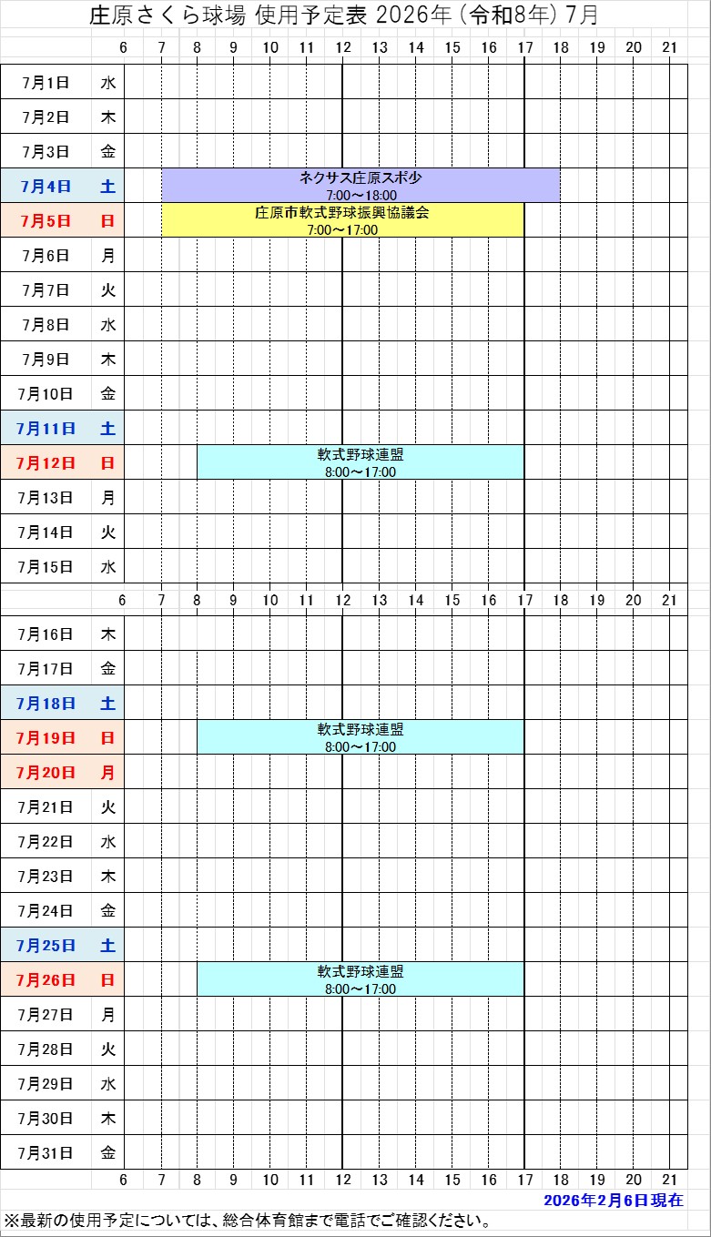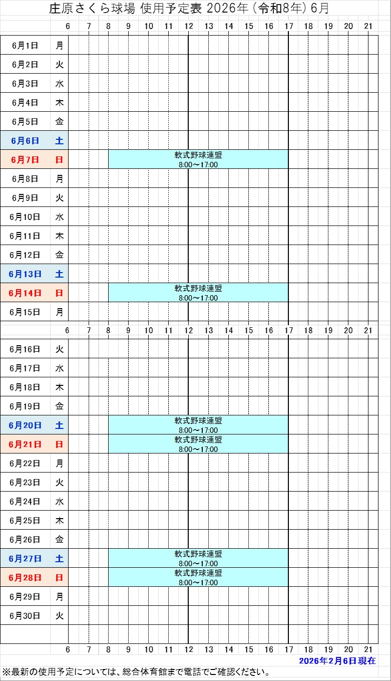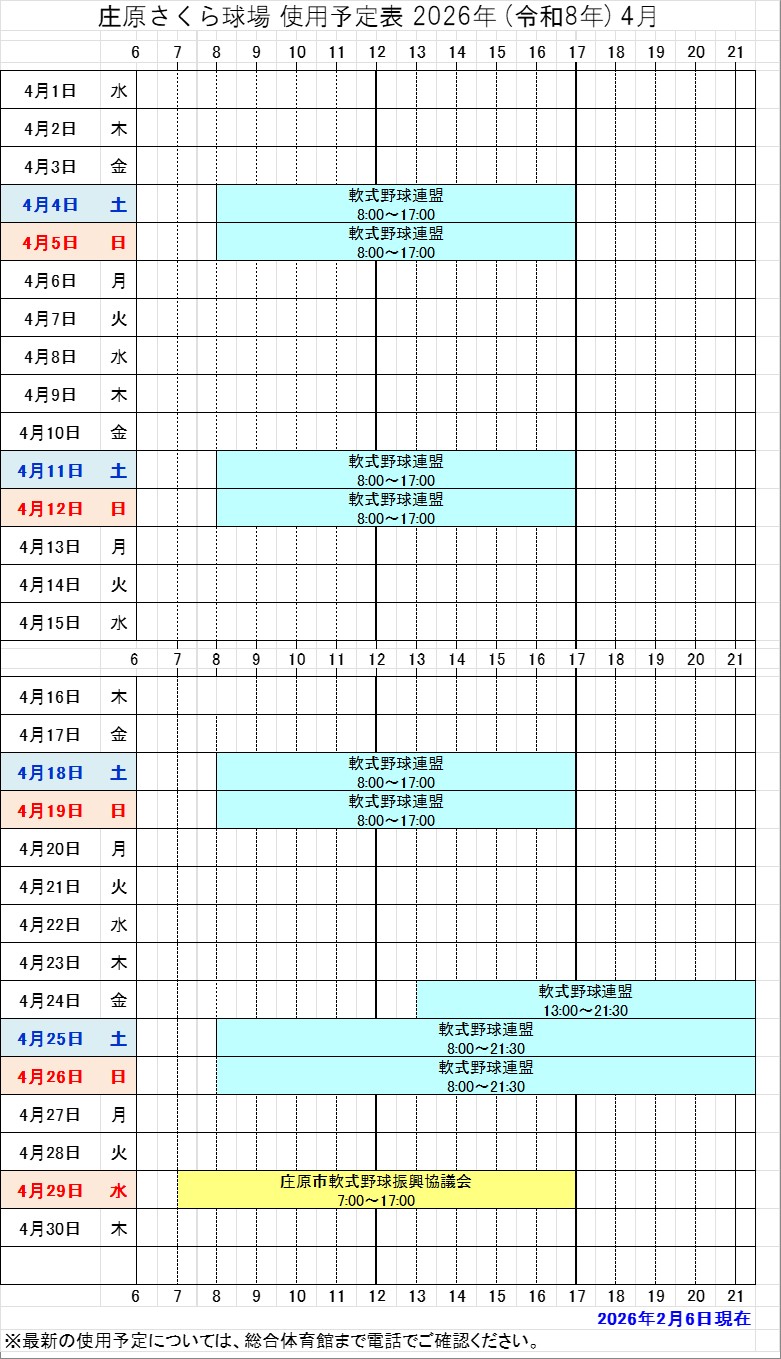 2026年(令和8年)度 庄原さくら球場 使用予定