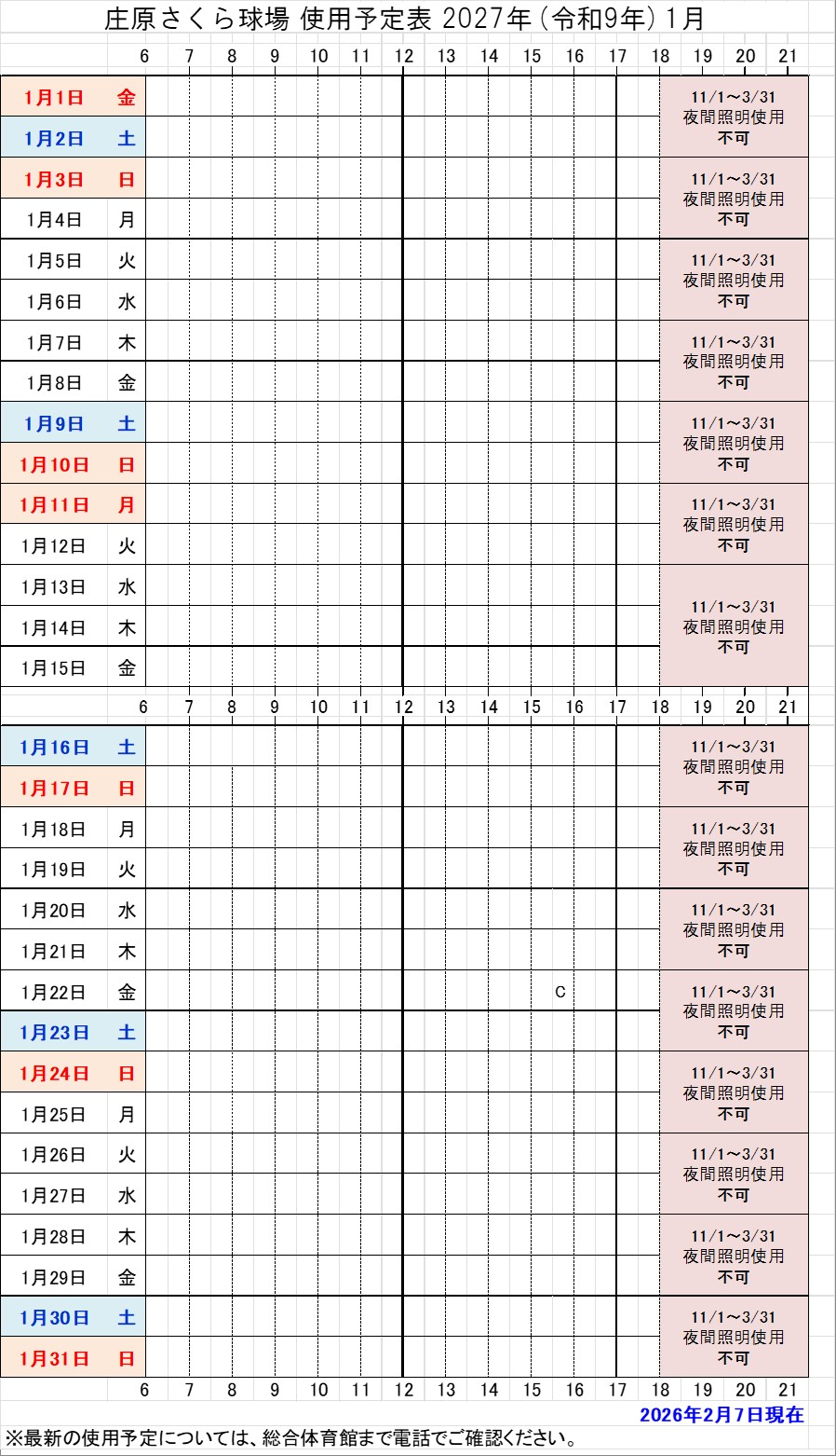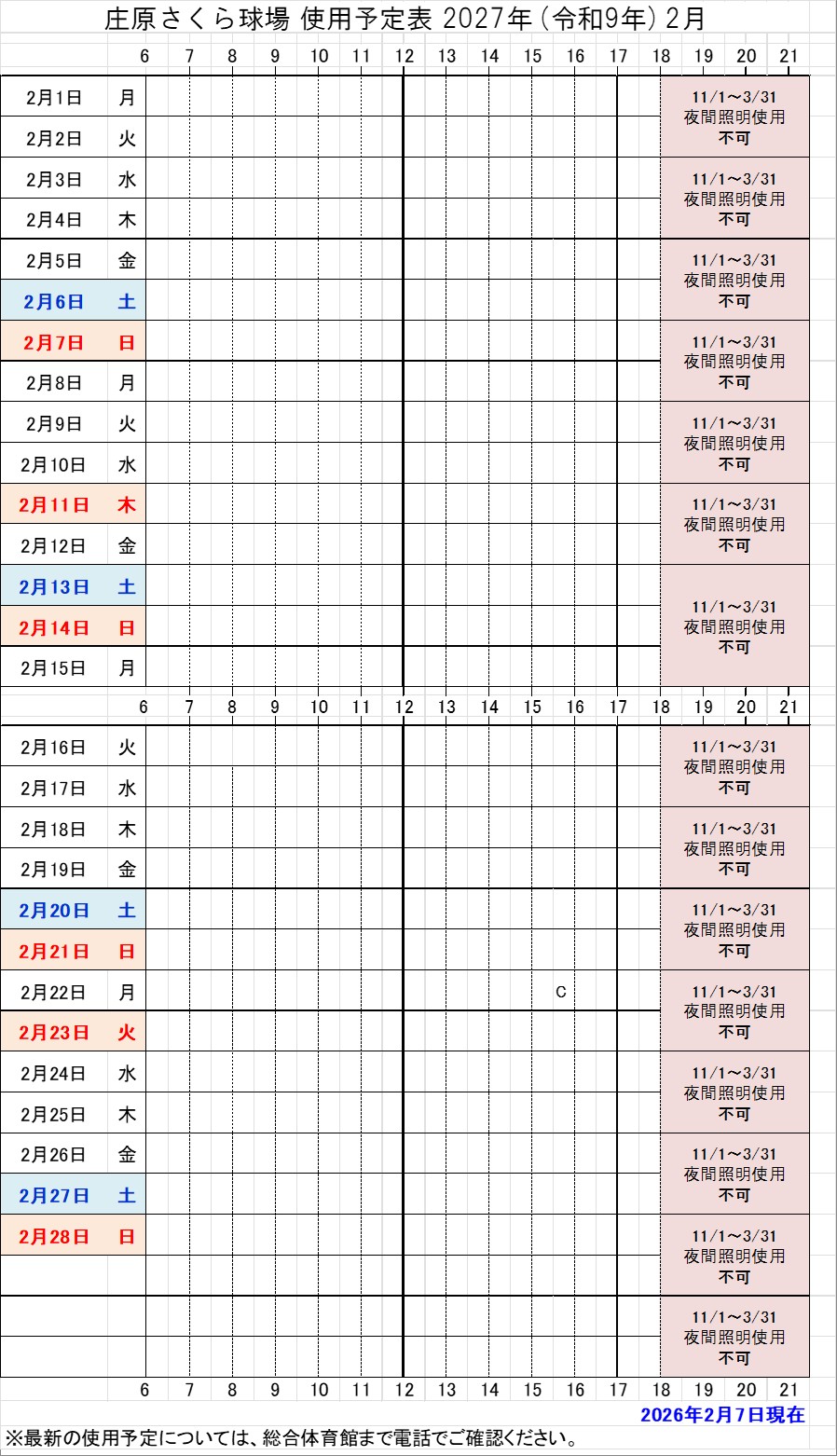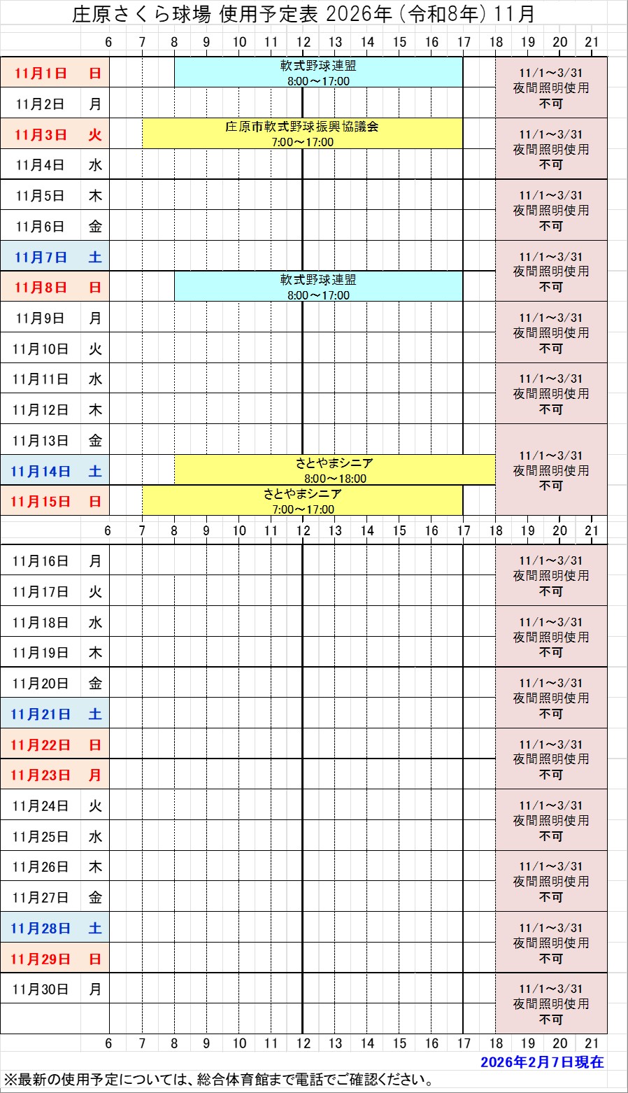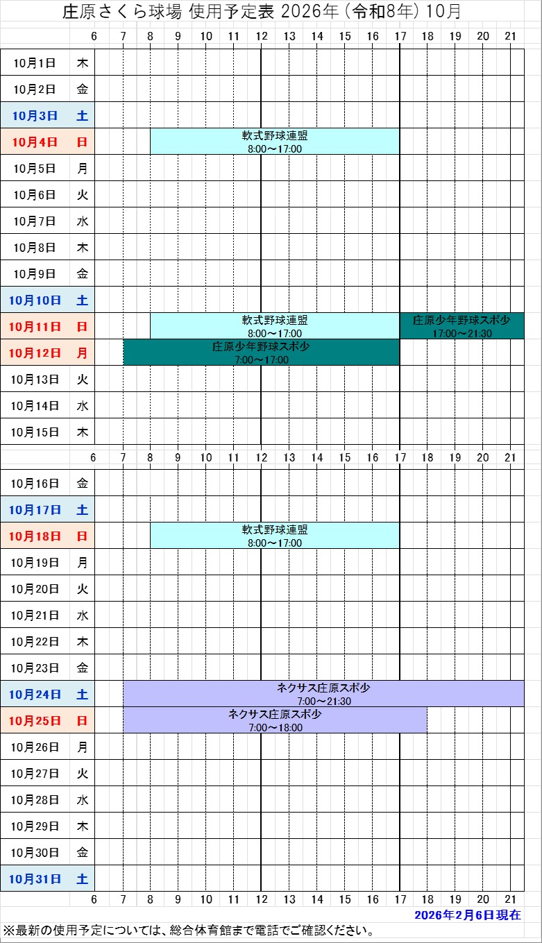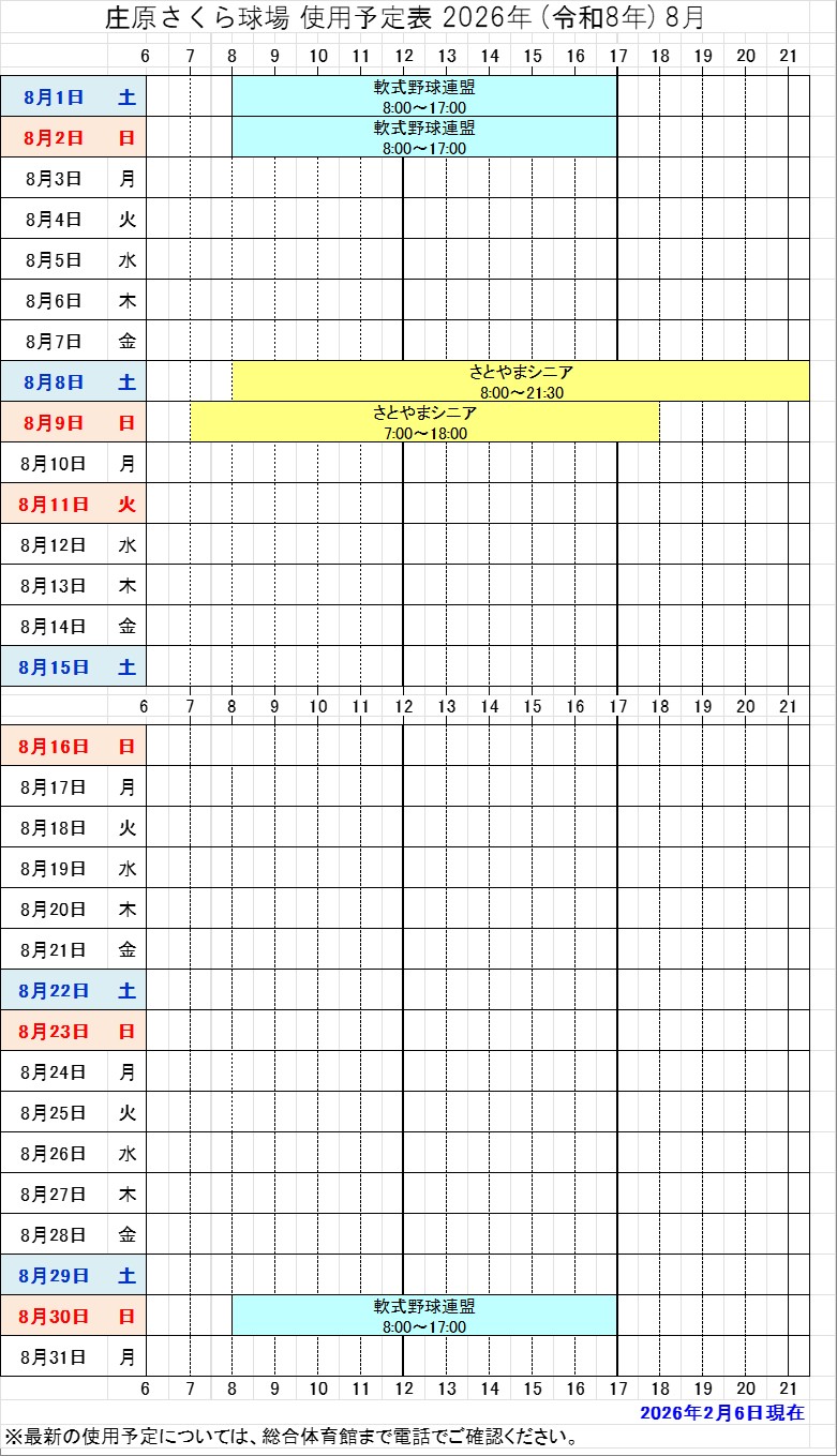 2026年(令和8年)度 庄原さくら球場 使用予定